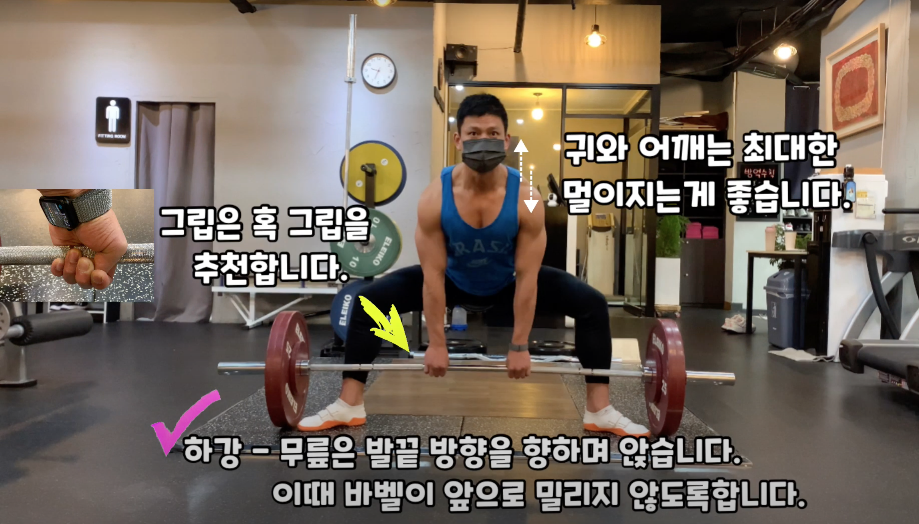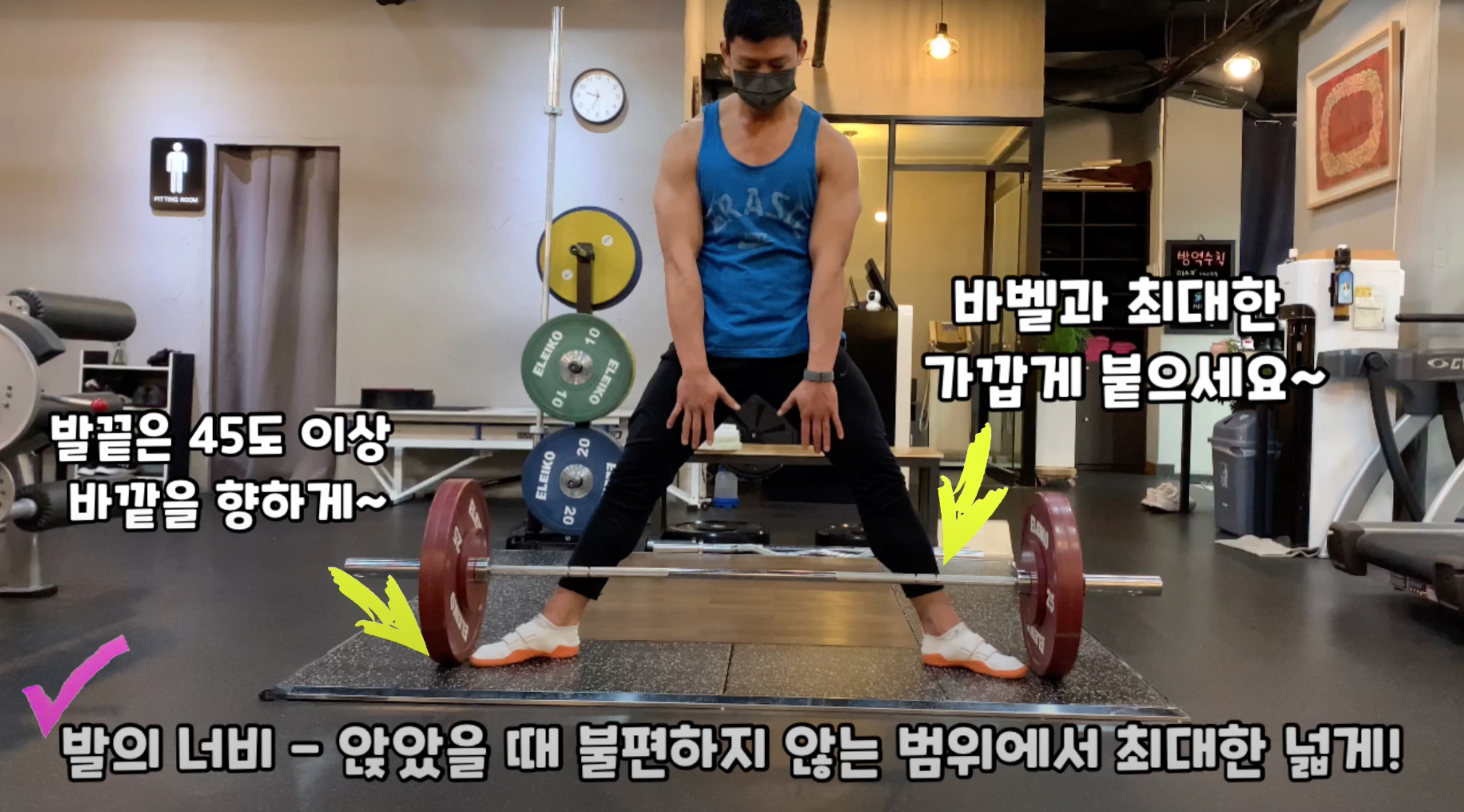 스모 데드리프트는 개인인 가동성과 신체 골격에 따라 자세가 조금씩 다릅니다.