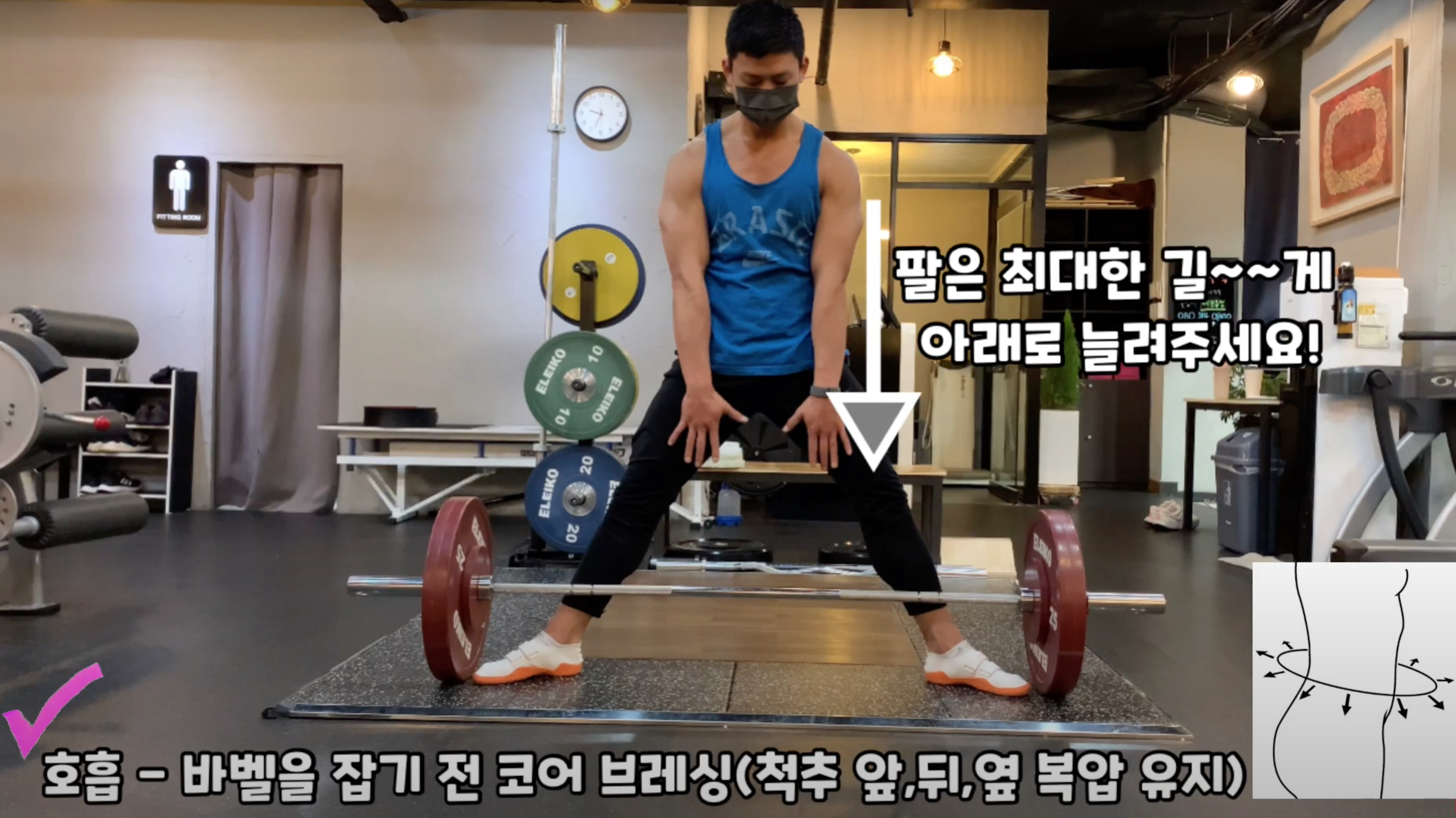 호흡 = 바벨을 잡기 전 코어 브레싱을 하셔야 합니다.