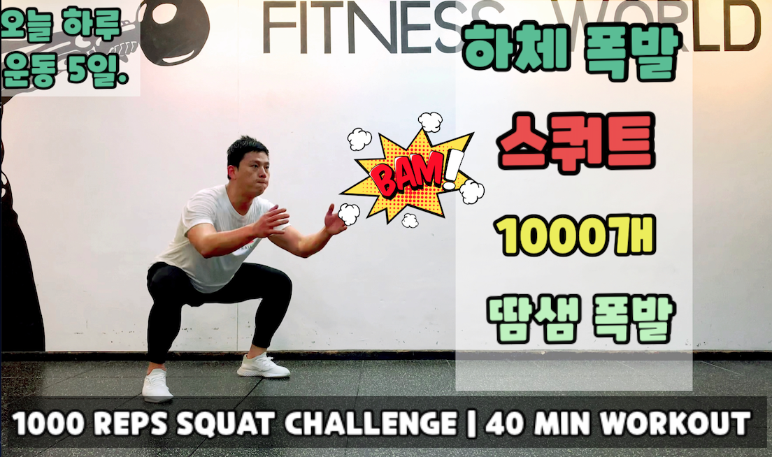 오늘 하루 운동 5일 차. 땀샘 폭발! 하체 폭발! 스쿼트 1000개 도전입니다.