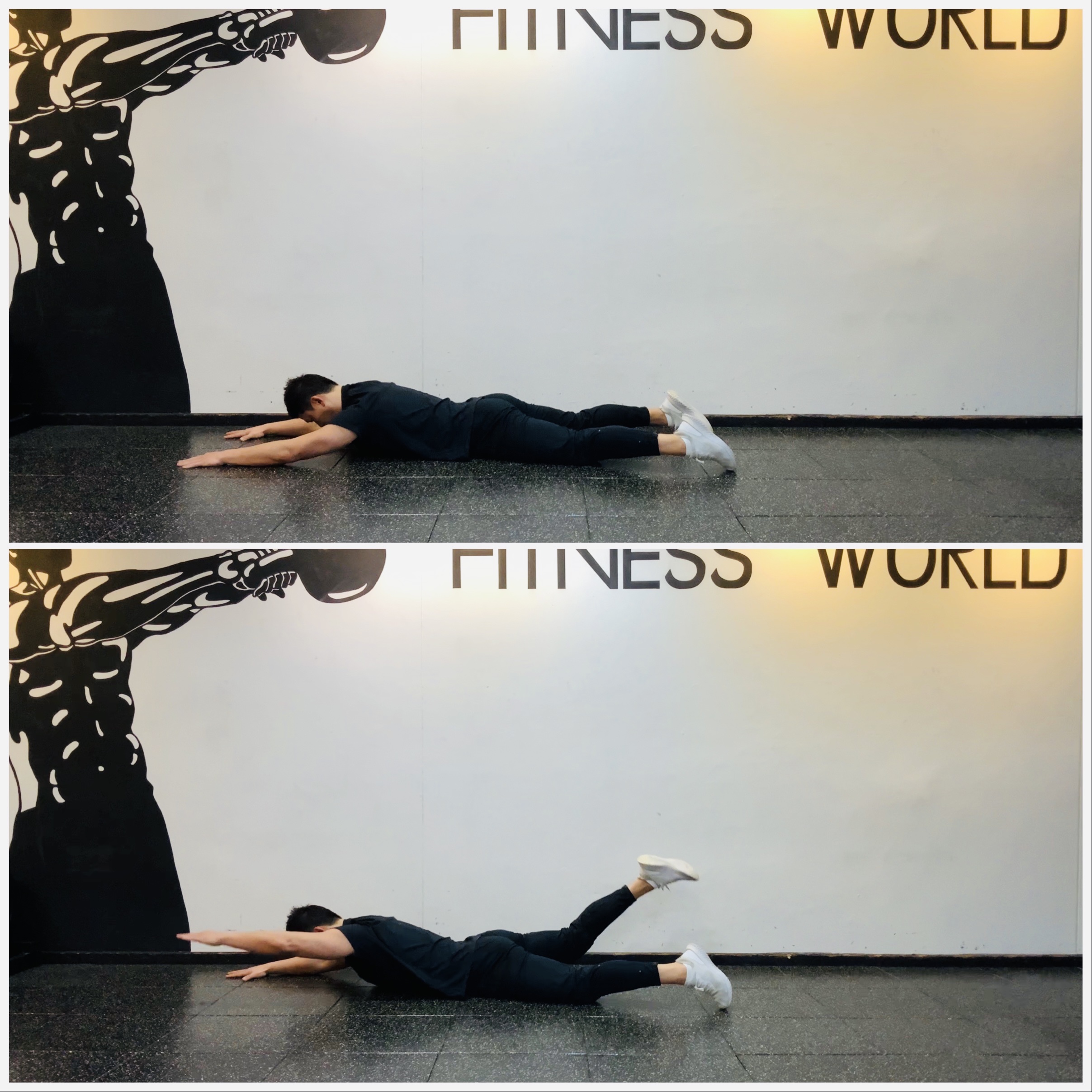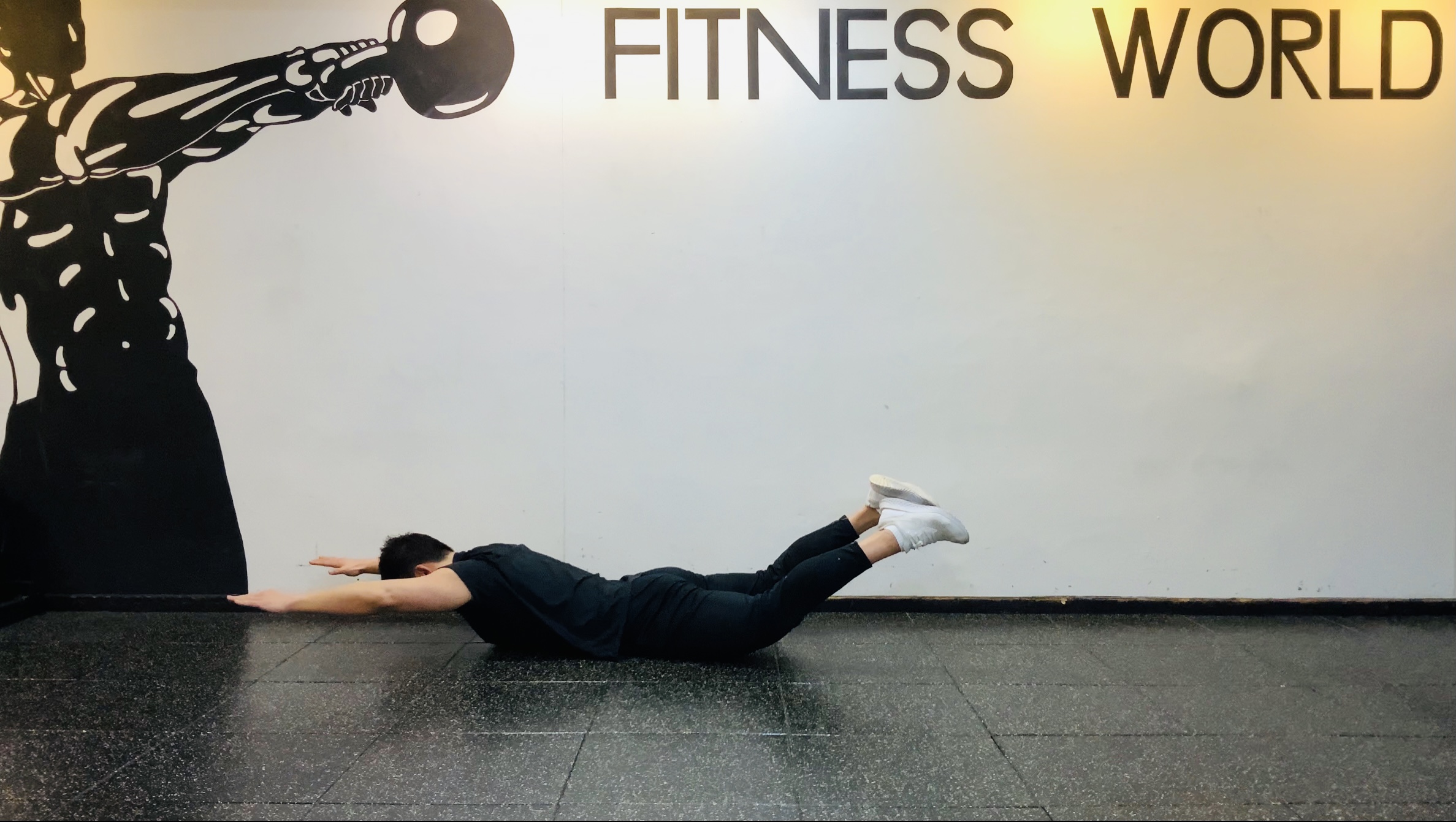2. 양손과 발을 들어 둔근과 허리, 등 근육을 수축하고 20초 버티기 한다.