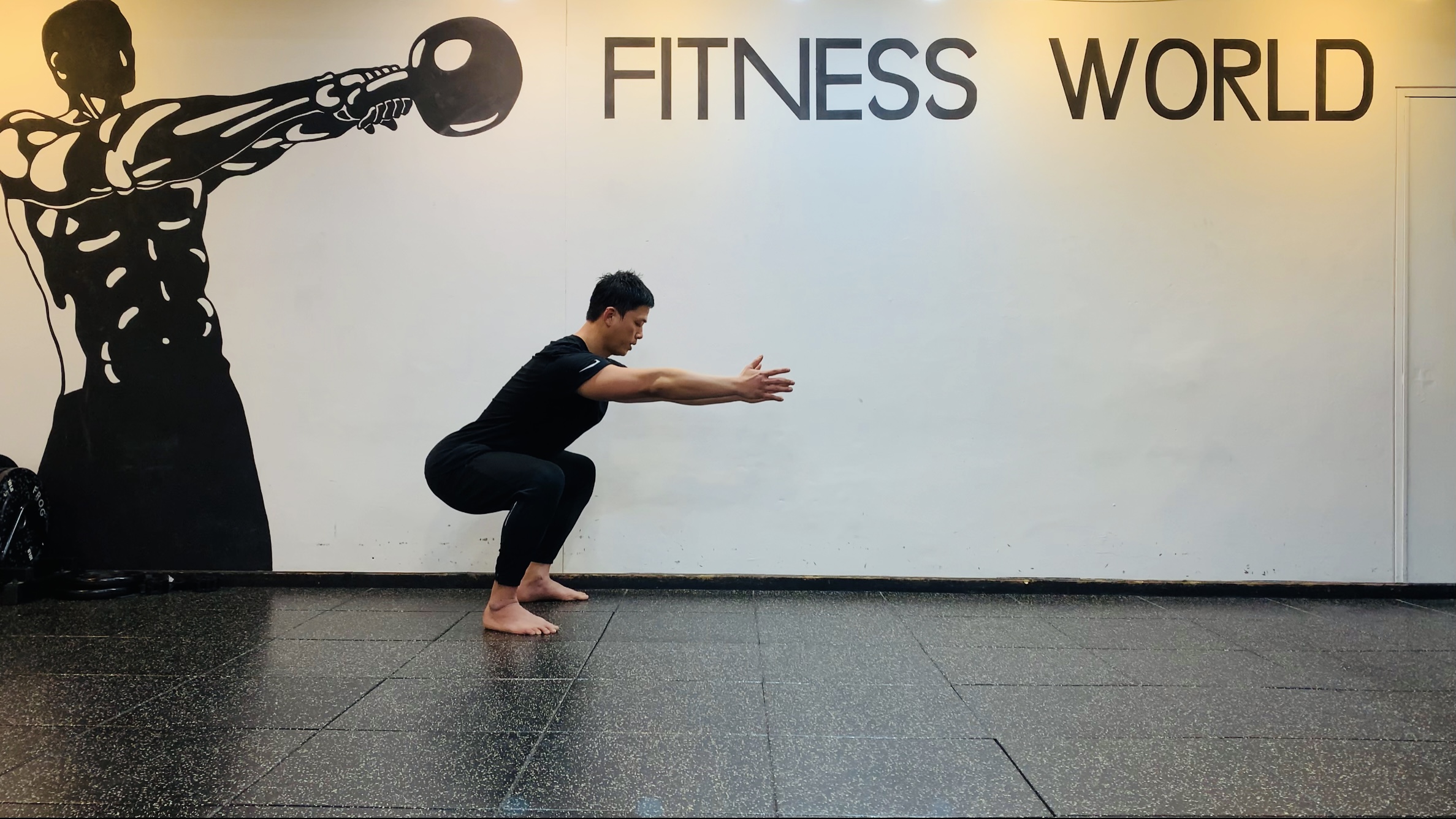 3. 대퇴부와 지면이 수평이 될 정도로 앉아서 20초 버티기 한다.