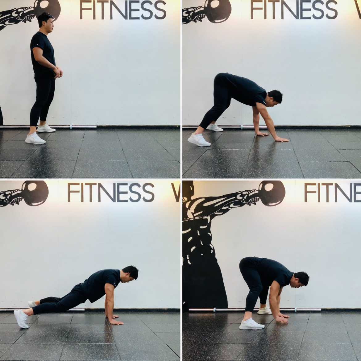 스쿼트는 10회 - 슬로우 버피는 5회 - 스모 스쿼트는 10회씩 실시합니다.