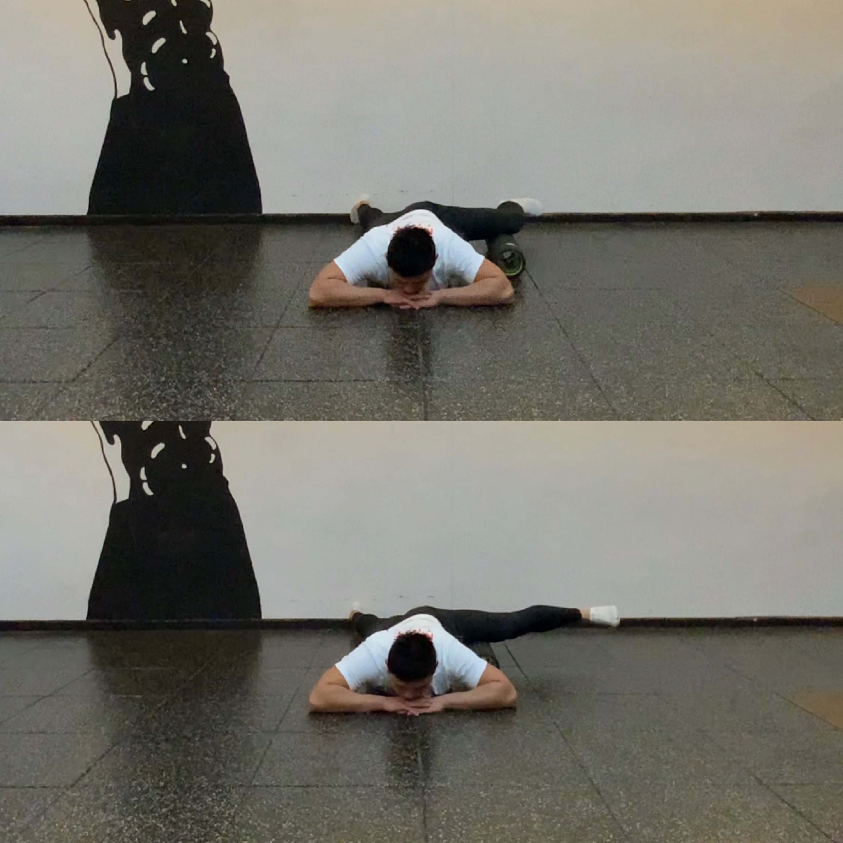 1. 지면에 배 대고 엎드려 양손은 머리 위쪽으로 뻗어둔다.